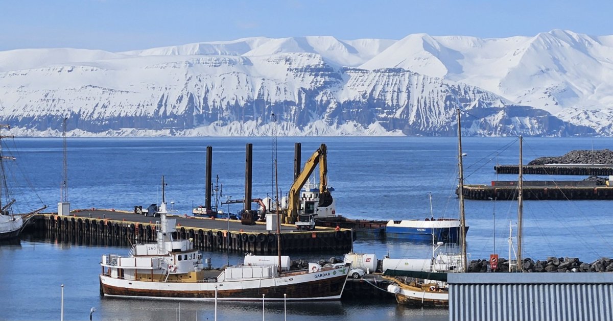 Í gær kom dýpkunarpramminn Pétur mikli til Húsavíkur. Til stendur að endurbyggja og lengja Þvergarðinn á Húsavík. Um er að ræða um 205 m endurbyggingu á núverandi kanti ásamt um 70 m lengingu á kantinum til suðvesturs.