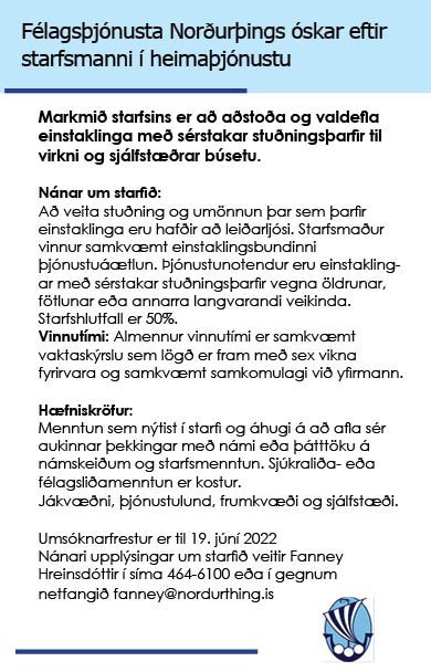 Félagsþjónusta Norðurþings óskar eftir starfsmanni í heimaþjónustu