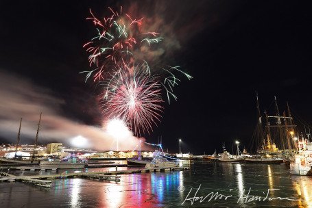 Skotið verður upp frá suðurfyllingu við hafnarsvæðið.