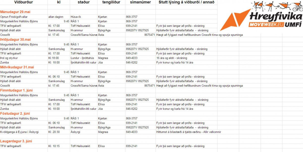 Fólk er hvatt til að nýta sér þessa flottu dagskrá og taka þátt í hreyfiviku UMFÍ.