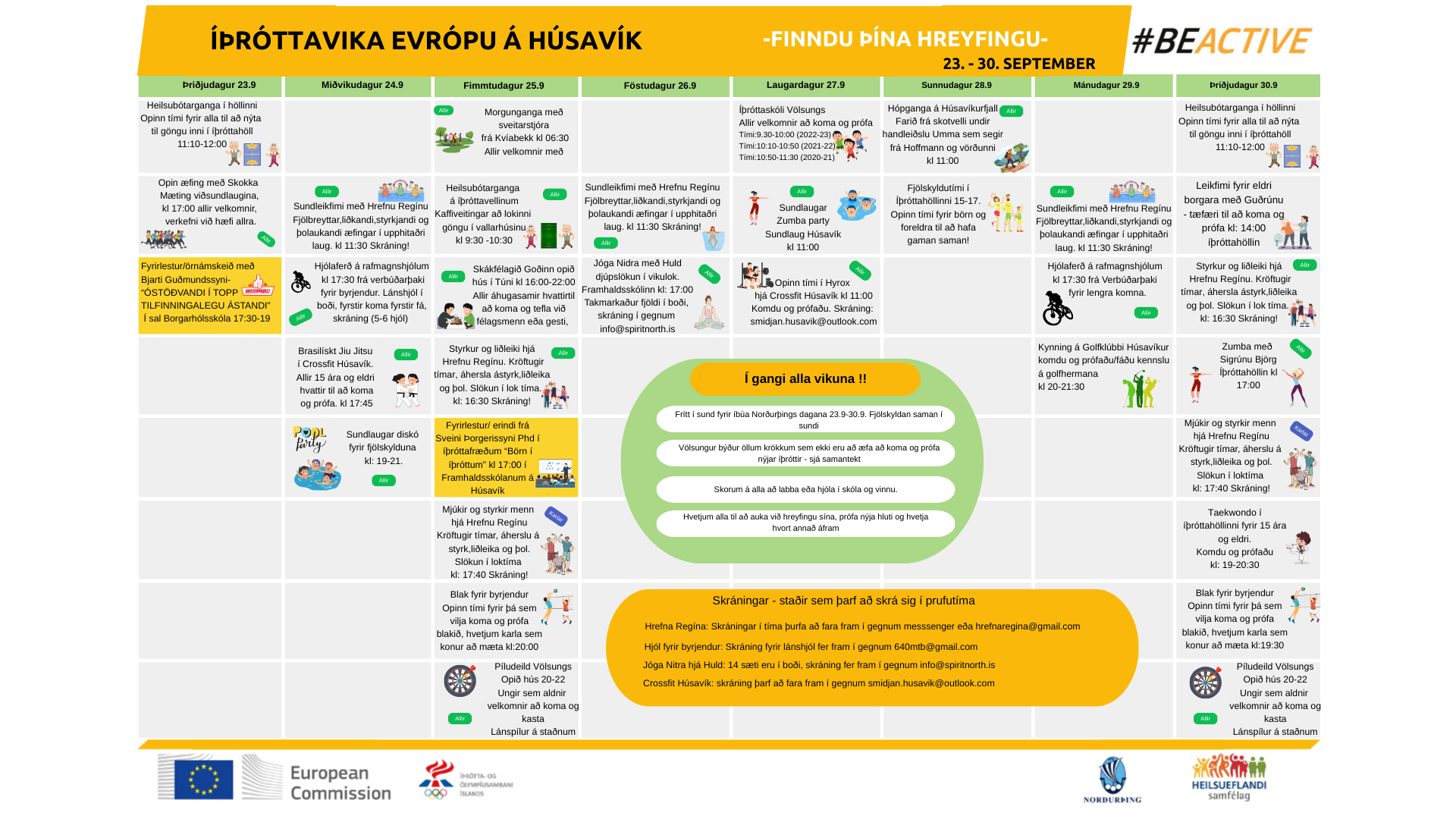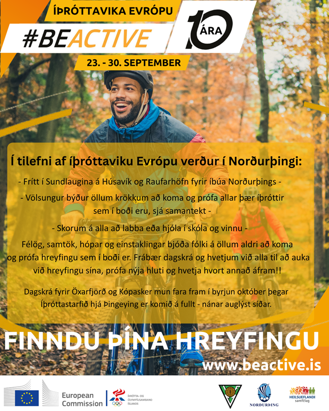 Við hvetjum íbúa Norðurþings til þess að skoða dagskrána vel, nýta þau fjölmörgu tækifæri sem hér eru til hreyfinga og hvetja hvort annað til þátttöku eða bara að hreyfa sig aðeins meira en maður er vanur að gera þessa vikuna.