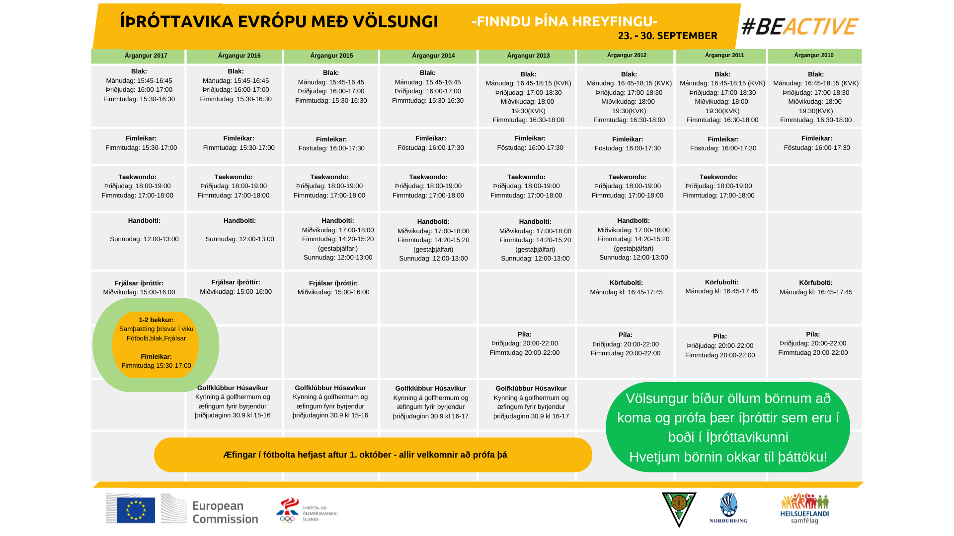 Nú í byrjun vikunnar er að hefjast Íþróttavika Evrópu sem stendur frá 23-30. september 2025 í yfir 30 Evrópulöndum.