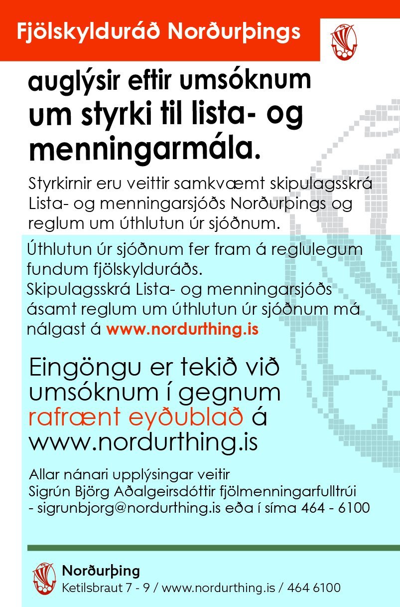 Eingöngu er tekið við umsóknum í gegnum rafrænt eyðublað á www.nordurthing.is