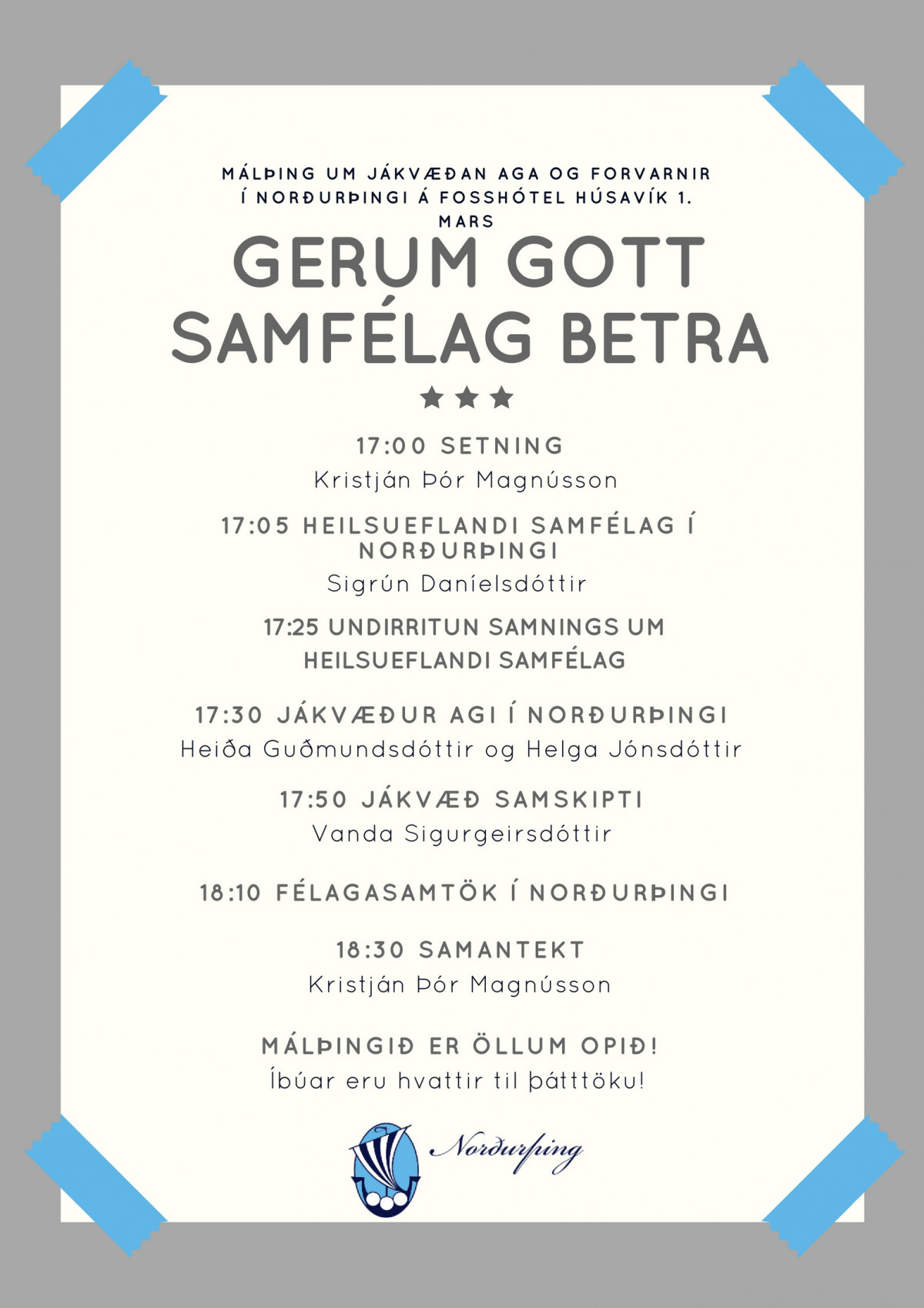 Málþingið hefst kl. 17:00 með setningu Kristjáns Þórs Magnússonar, sveitarstjóra.