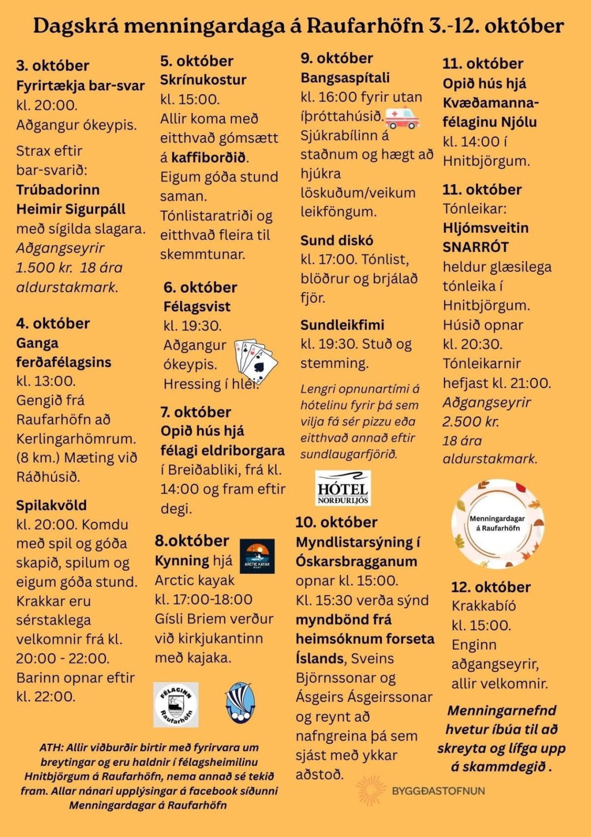 Menningardagar á Raufarhöfn eru framundan og verða frá 3. - 12. október!