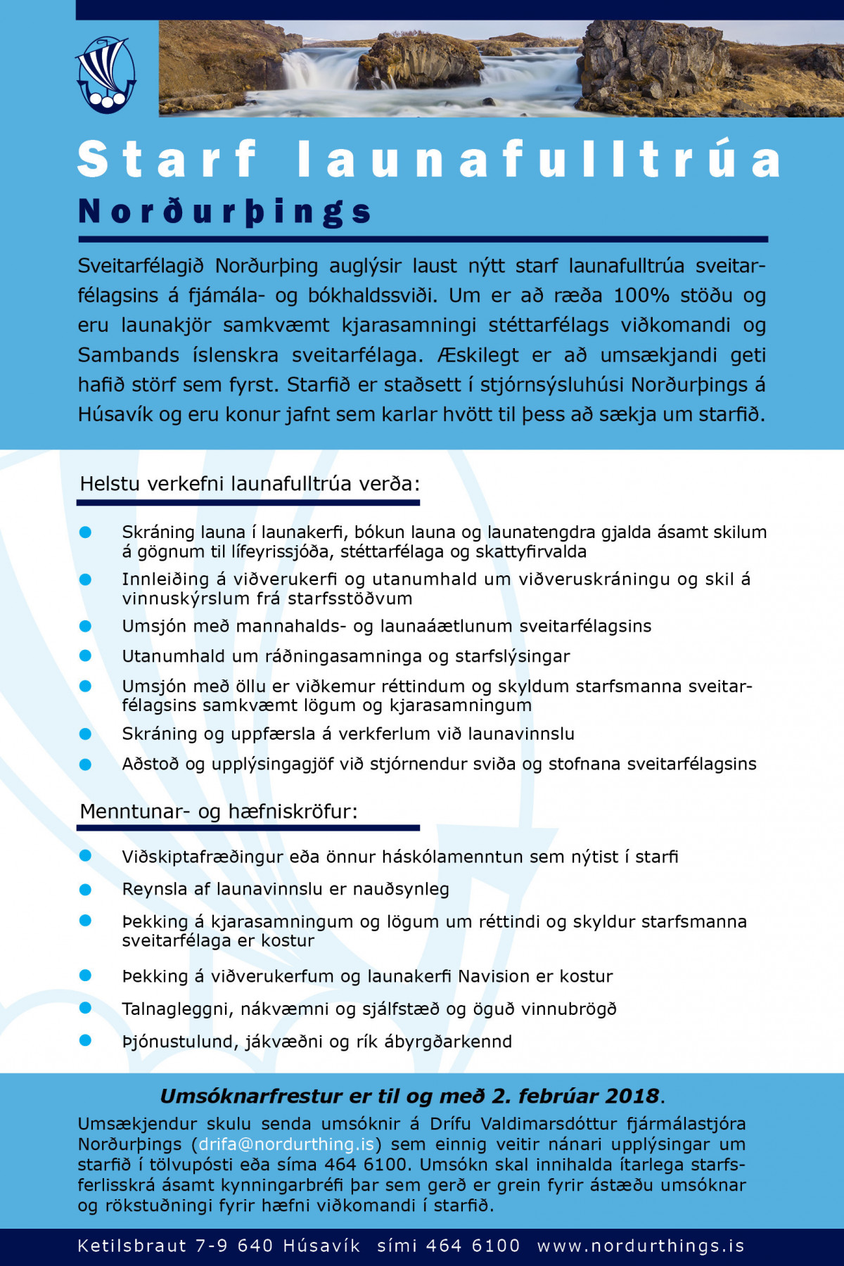 Norðurþing auglýsir nýtt starf launafulltrúa sveitarfélagsins á fjármála- og bókhaldssviði