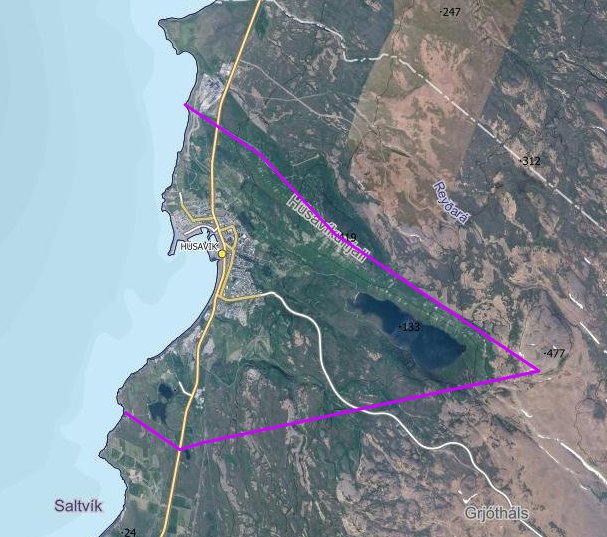 Griðlandið afmarkast af fjallsafleggjara upp í topp Húsavíkurfjalls og þaðan um skriðubrúnir suður fyrir Botnsvatn. Þaðan í beina stefnu í Gvendarstein og um suðurmörk hverfisverndarsvæðis við Kaldbak til sjávar. Svæðið er afmarkað innan fjólubláa þríhyrningsins á meðfylgjandi mynd.
