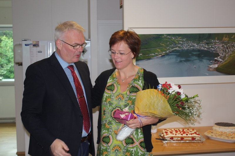 Þeim stöllum voru færð blóm og gjafir í tilefni þessara tímamóta og var það Bergur Elías bæjarstjóri sem kvaddi þær fyrir hönd starfsfólks